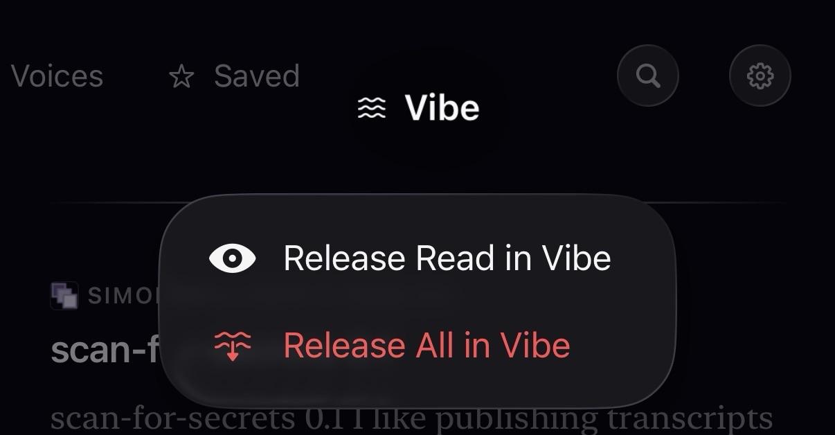 TIL: In Current RSS reader, if you long-touch Vibe, there is the option to “Release Read in Vibe” @tg is this meant to be so hidden?